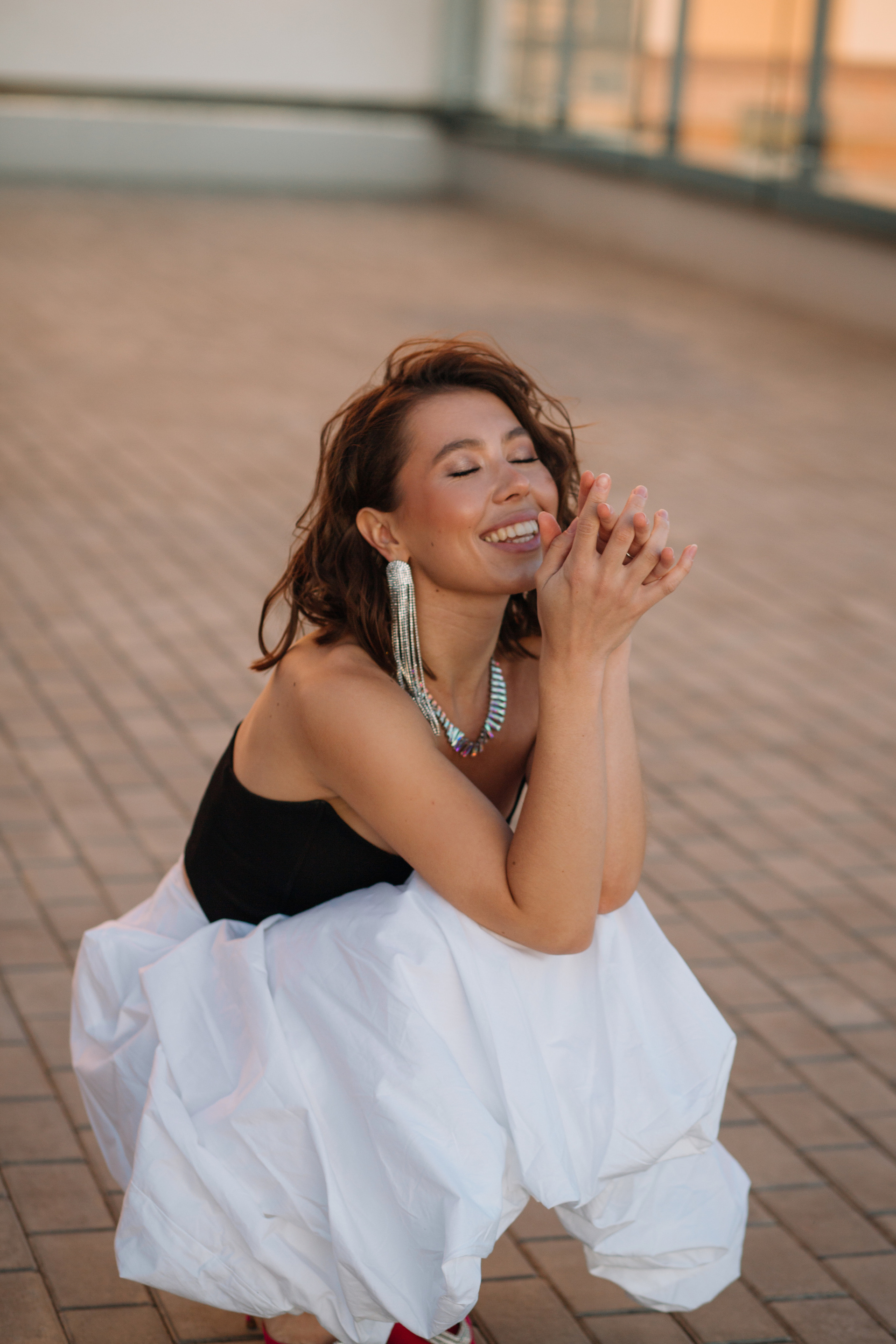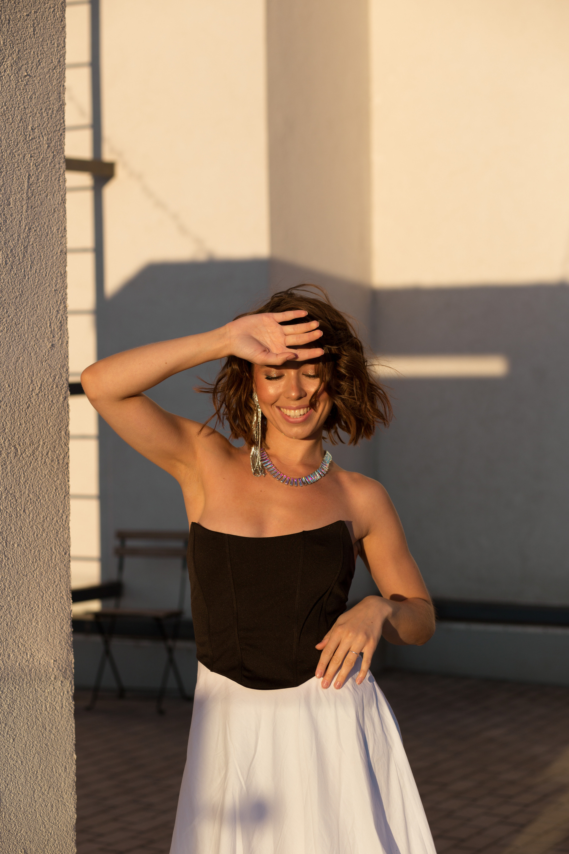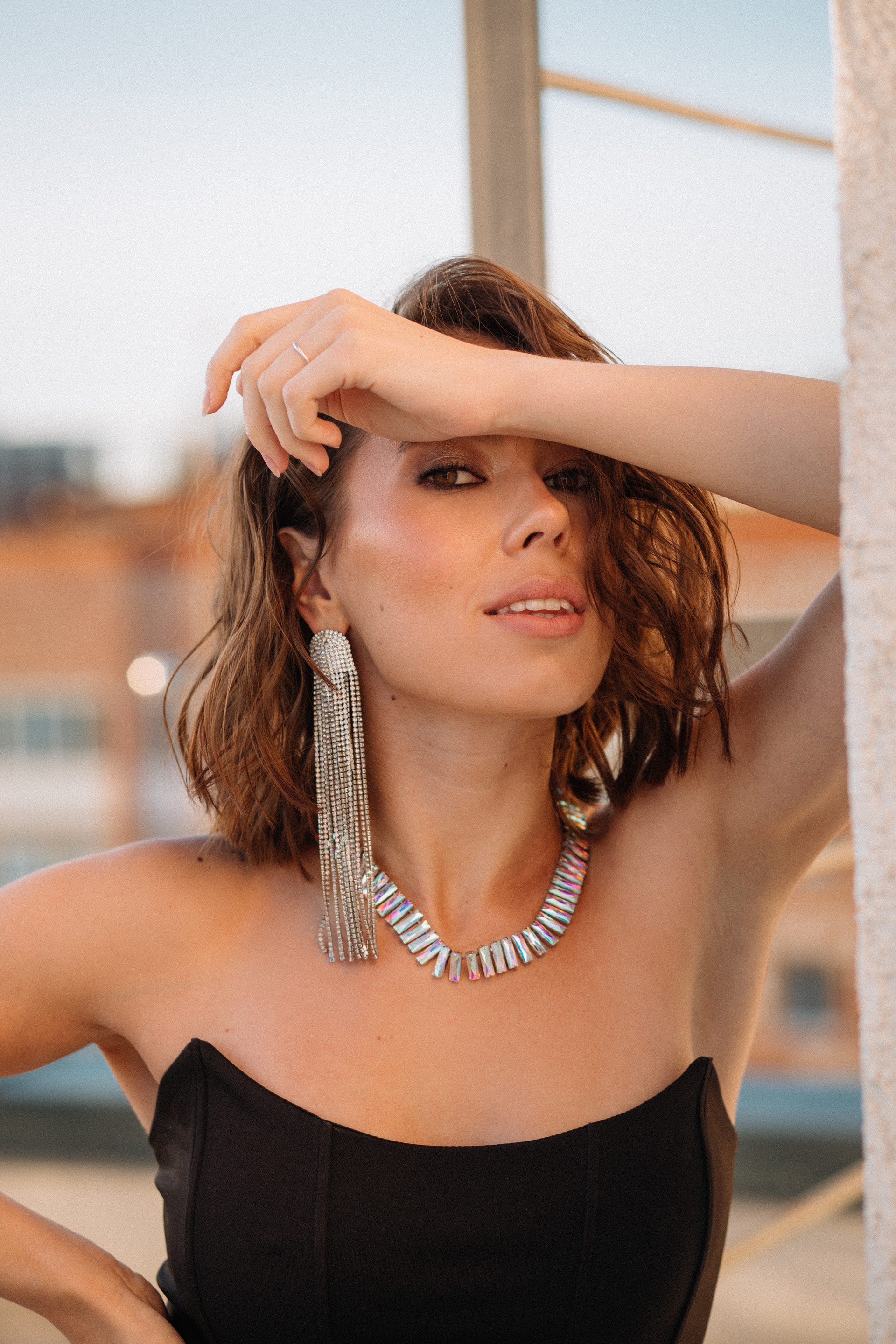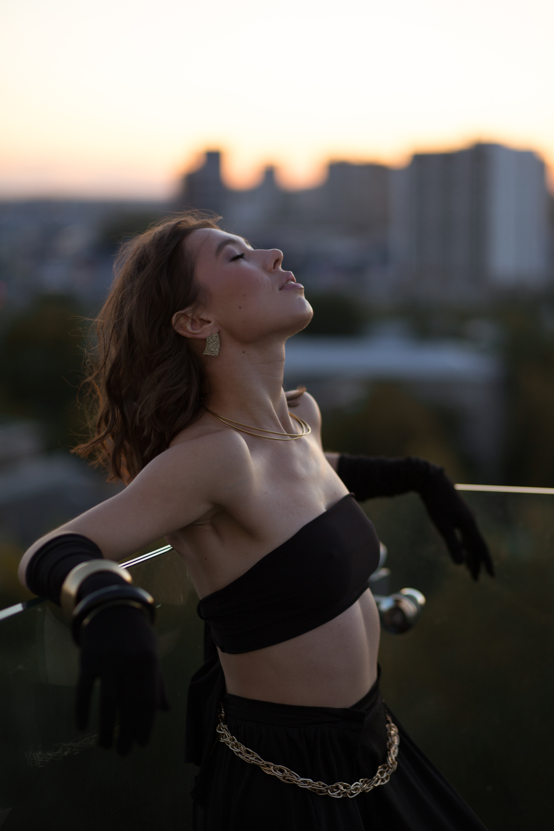 Мы выбрали необычную локацию — крышу одного из жилых домов Ижевска. Стилист предложила контрастные между собой образы — один нежный, с корсетом и юбкой, а второй с кожаными ботфортами и смелым верхом!