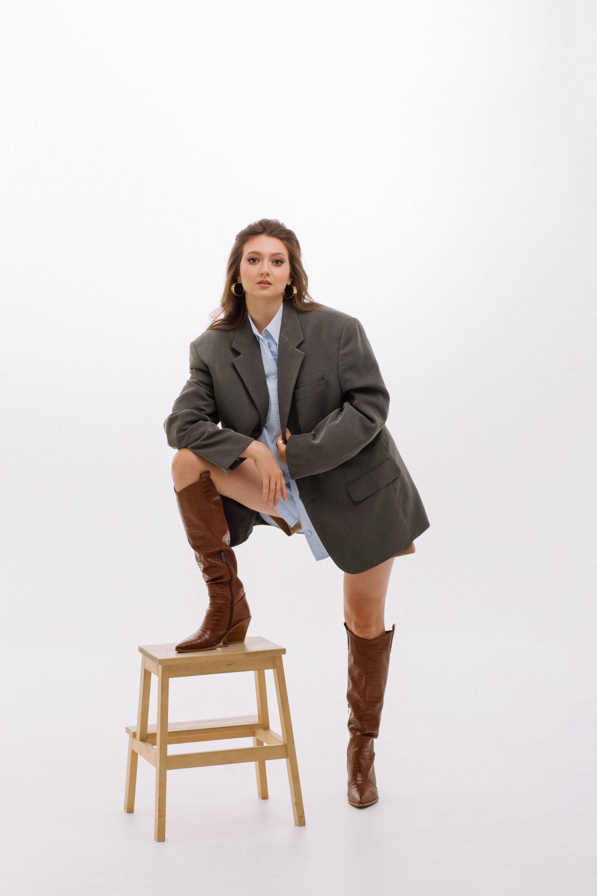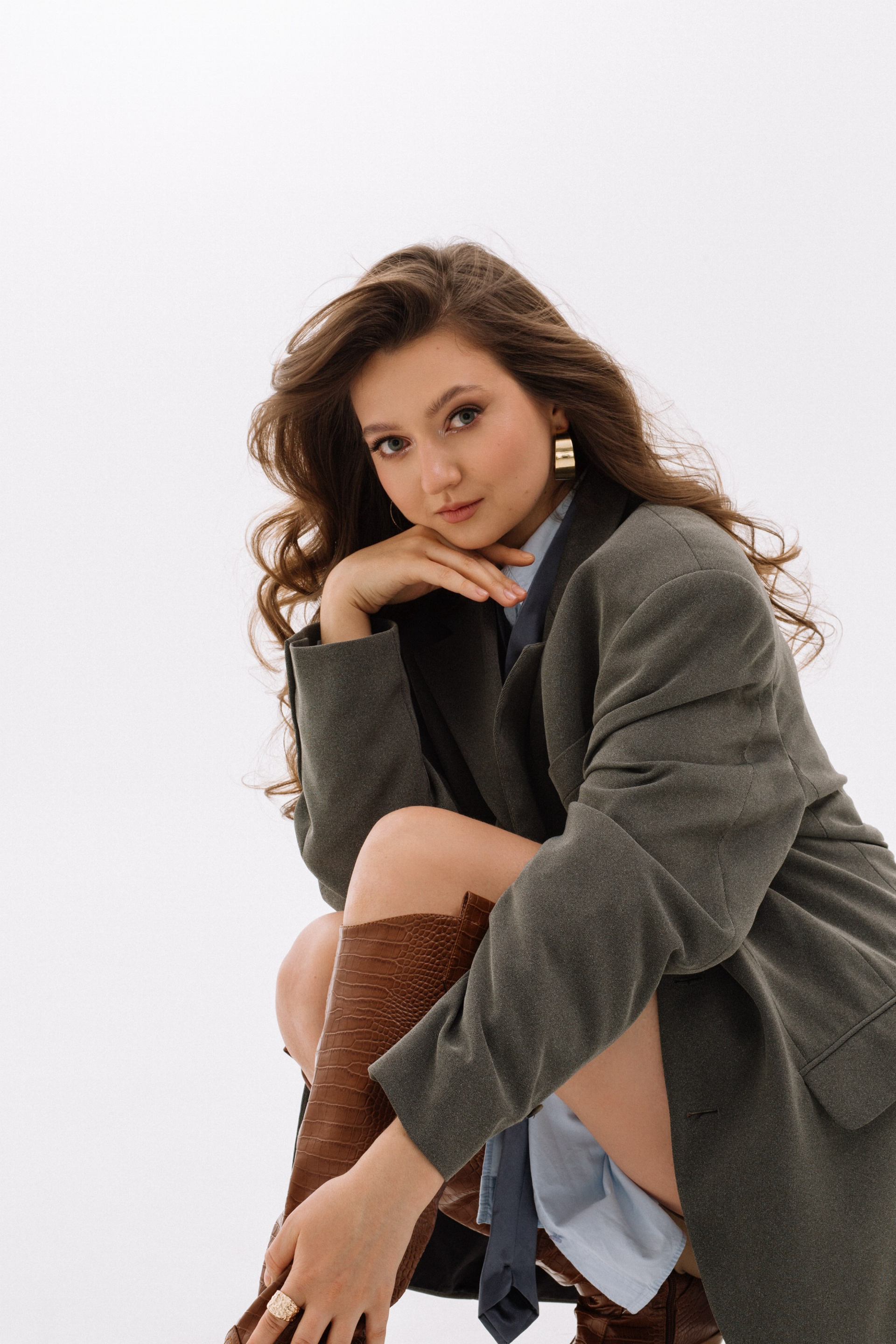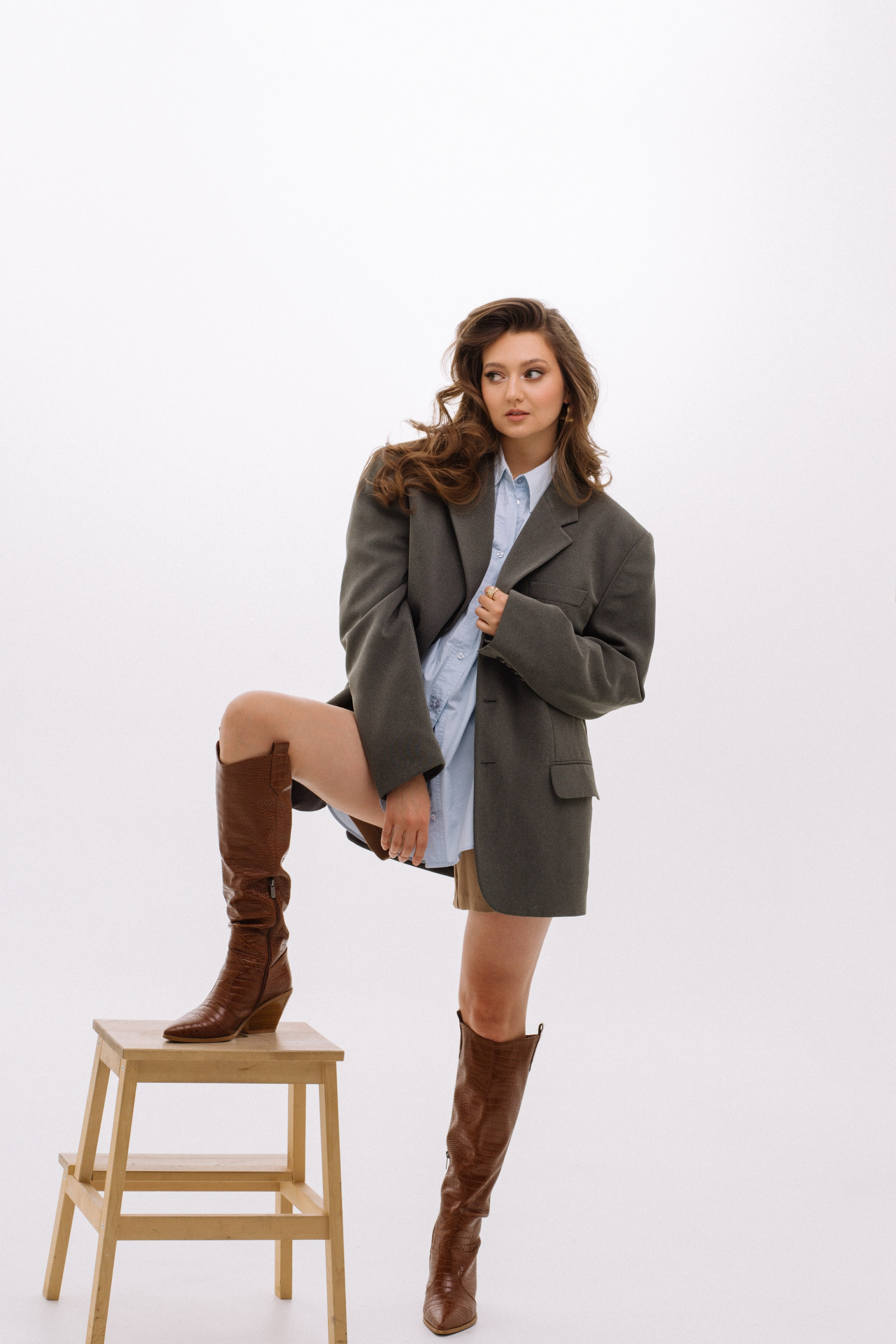 Полина — фотограф. Она решила сделать съемку к своему дню рождения. Для нее мы со стилистом решили собрать три разных по настроению образа.