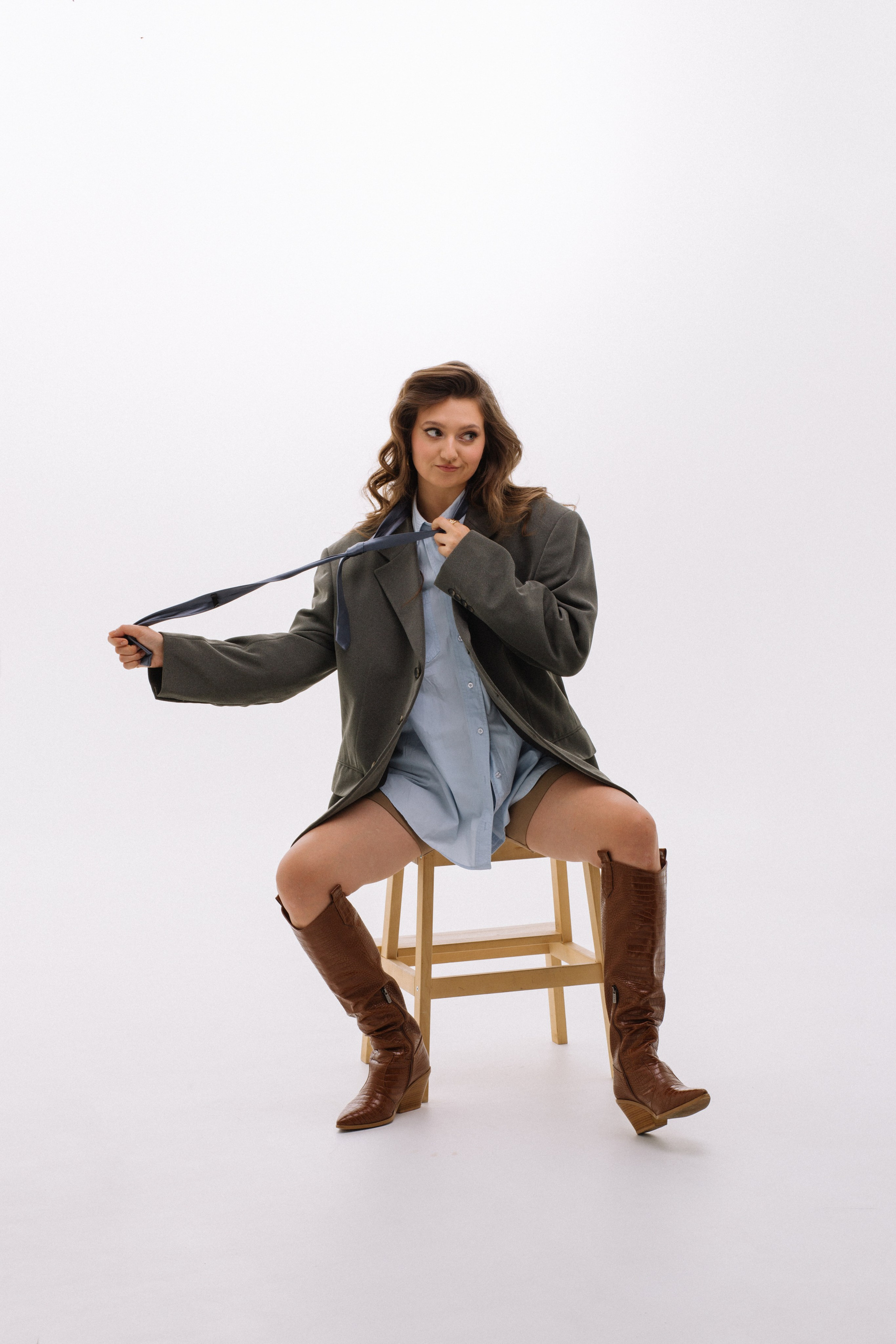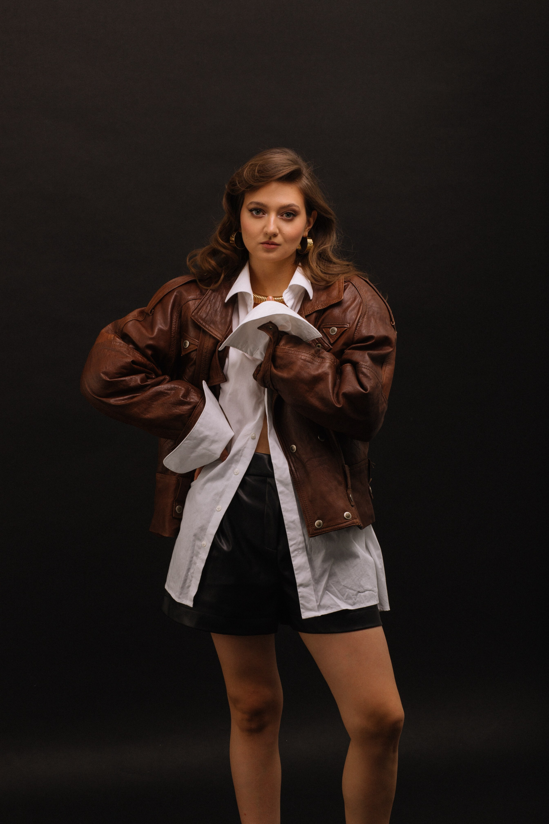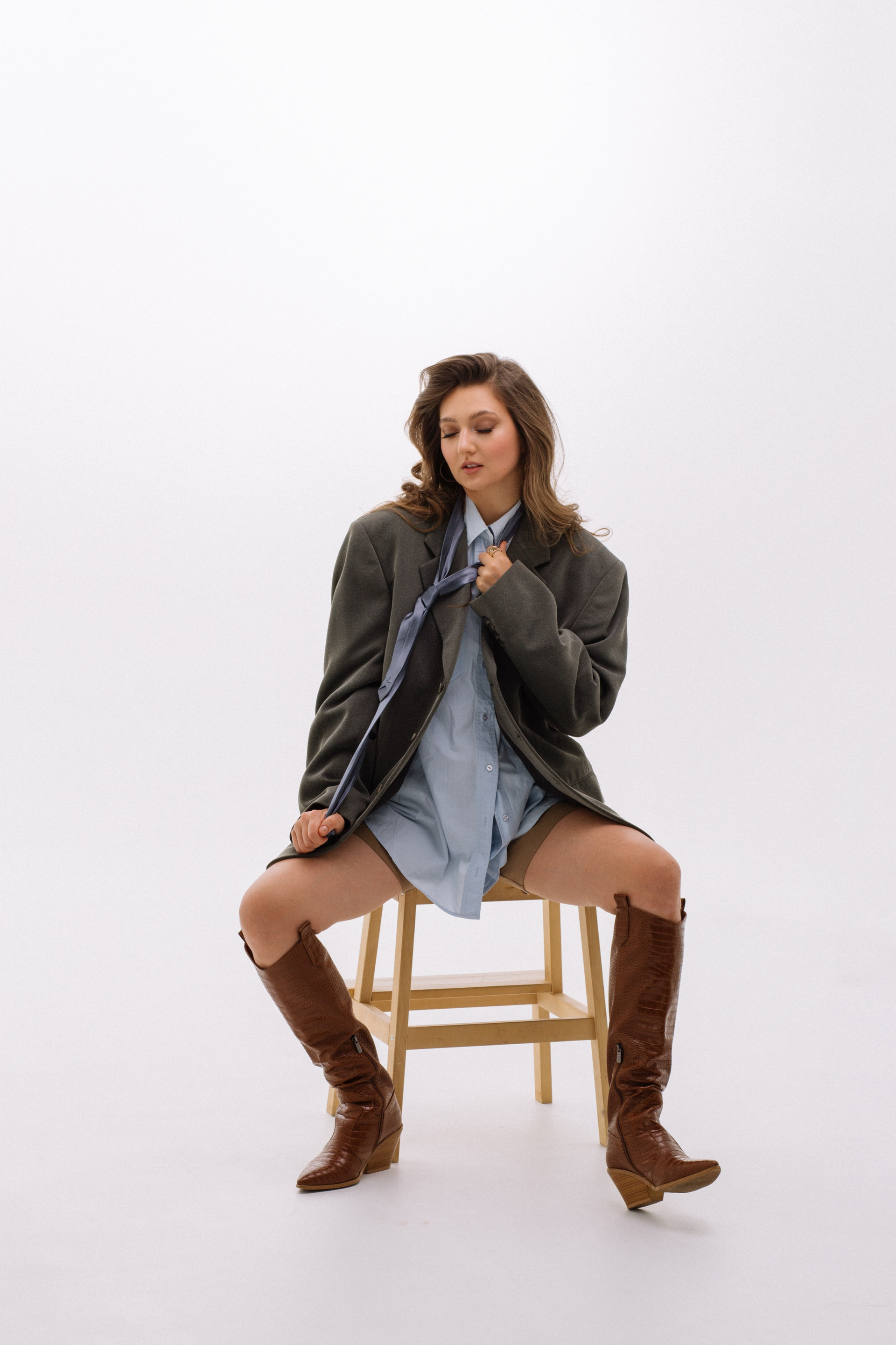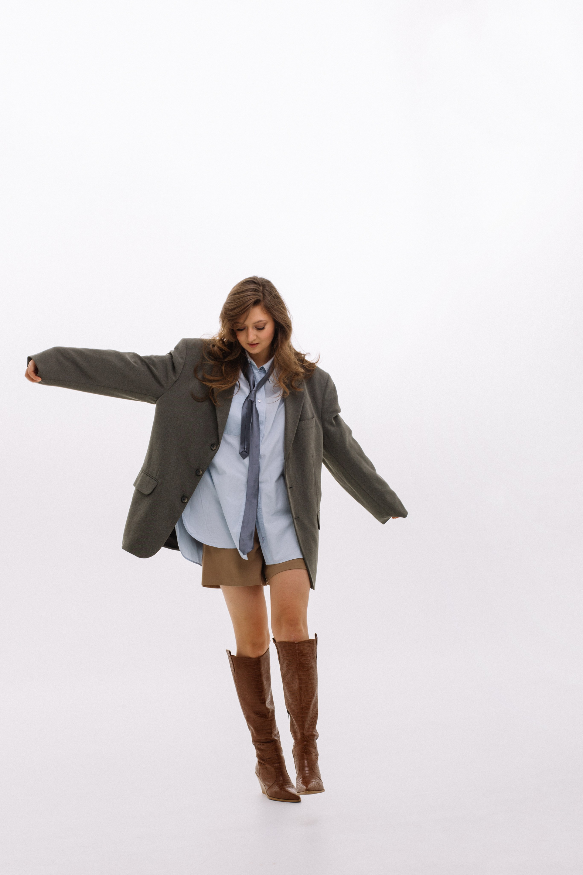 Полина — фотограф. Она решила сделать съемку к своему дню рождения. Для нее мы со стилистом решили собрать три разных по настроению образа.